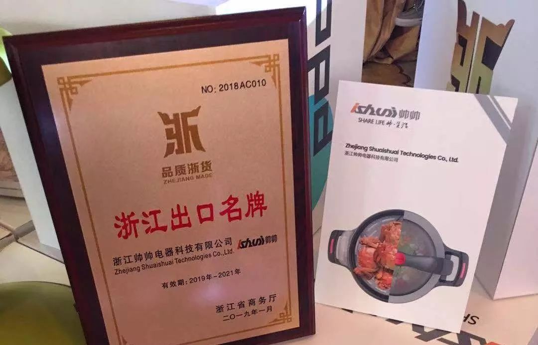近年來,浙江帥帥電器科技公司在公司管理上、產能效益上、在新產品開發和設備投入上,在國際市場開拓方面都花費了大量的精力,此次榮獲“浙江出口名牌”的稱號,是對公司最大的鼓勵。